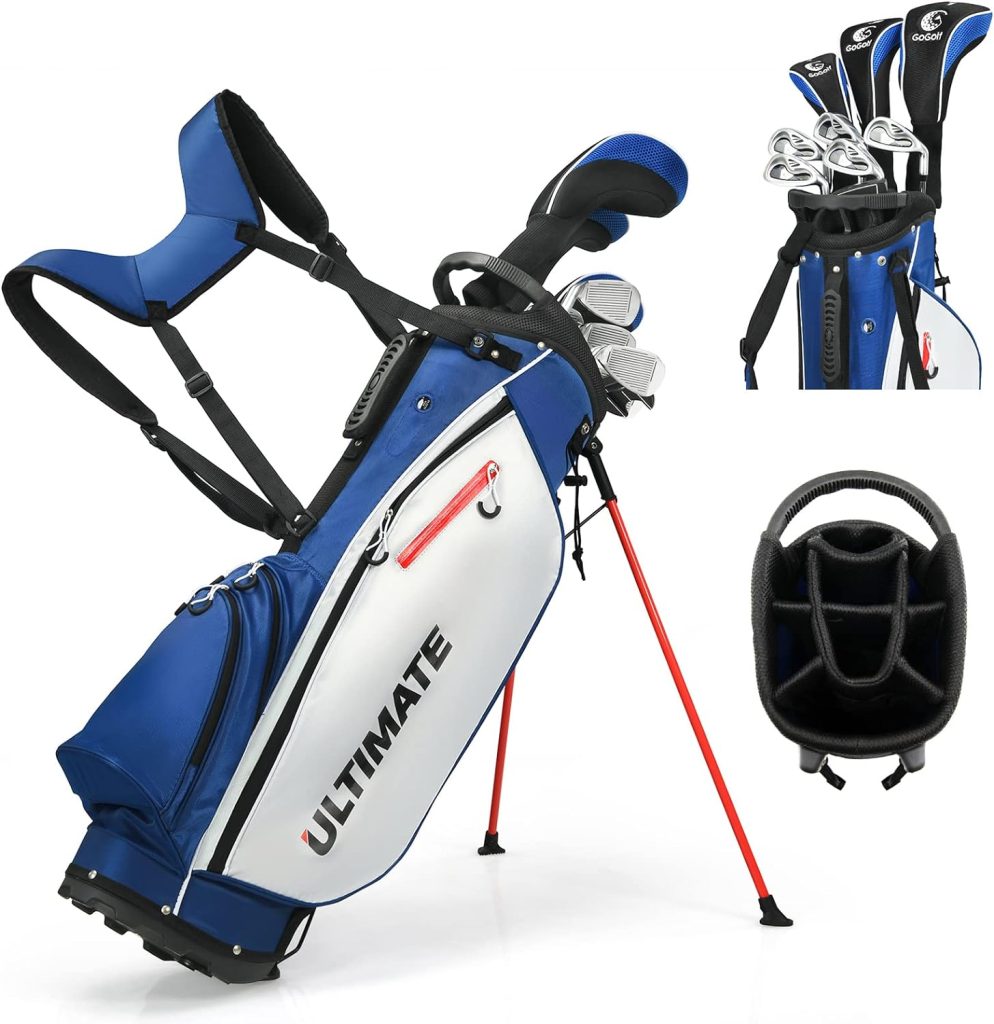 - - Completed & Premium Golf Set: The completed golf clubs set with premium components and advanced materials perfectly meets all your needs. This set includes aluminium #1 driver, #3 fairway wood, #4 hybrid, #6/#7/#8/#9/#P irons, putter and the lightweight golf stand bag. Besides, three extra covers well protect the driver, fairway wood and hybrid.